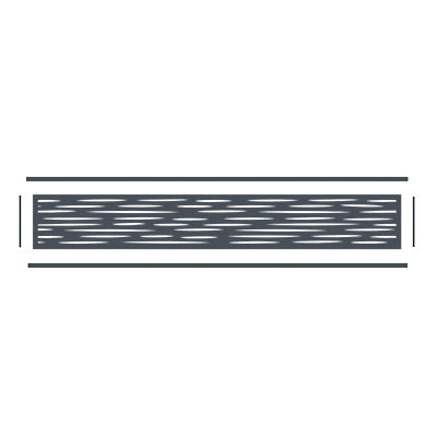 Un motif décoratif géométrique composé de fines lignes horizontales, toutes équidistantes les unes des autres. Ce motif évoque un sentiment de régularité et d'ordre. L'espacement uniforme entre les lignes renforce l'aspect géométrique du motif et permet la végétalisation de la clôture. Les plantes peuvent s’entrelacer avec les mailles du décor et grimper le long des montants.