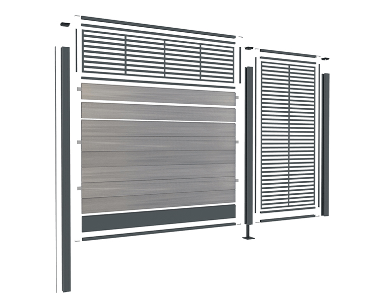 Grâce à leur disposition subtile et à leur densité, ce motif offre un niveau accru d'intimité et d'occultation, tout en ajoutant une dimension esthétique captivante à tout environnement où il est utilisé. Le décor horizontal LAMIA remplace exactement 2 lames aluminium ou composite.