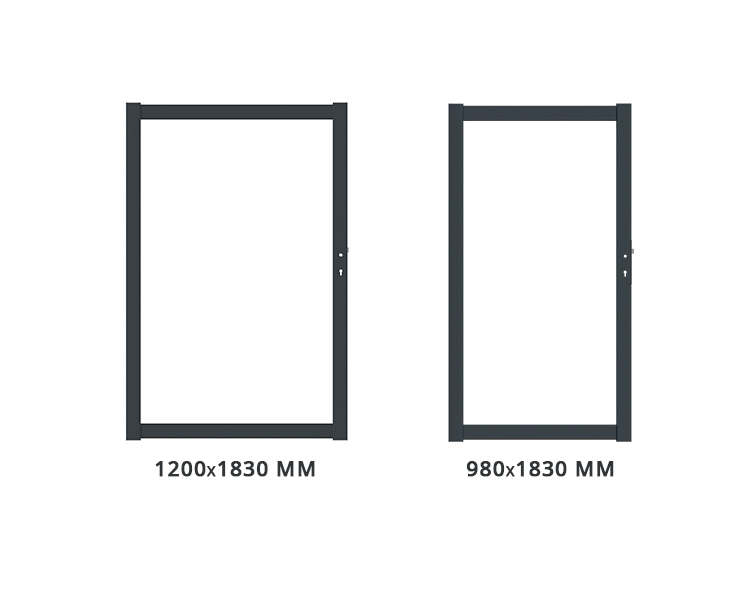 Notre gamme propose deux dimensions de cadres, en gris anthracite ou en noir permettant une largeur maximale de 980 mm ou 1200 mm. Ces cadres sont conçus pour convenir à une ouverture à gauche ou à droite, que ce soit en tirant ou en poussant. De plus, la serrure est directement intégrée dans le montant du cadre pour assurer la sécurité de votre propriété.